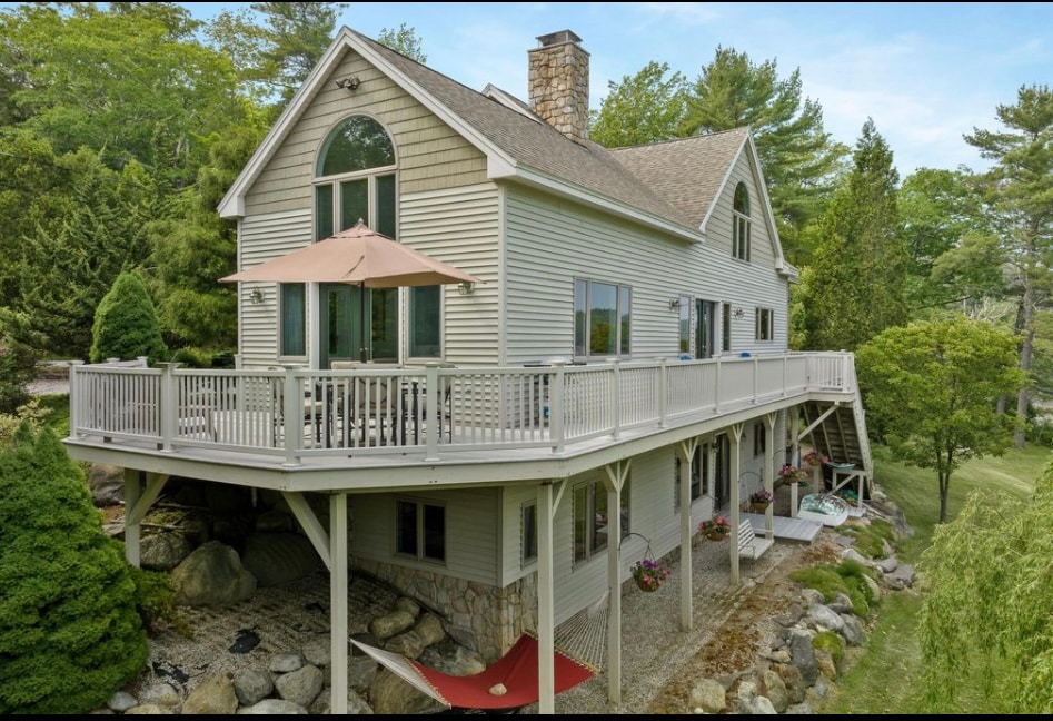 Escape to a luxurious, privately designed glass-walled waterfront cabin on 3+ secluded acres along the Crooked River in Naples, Maine. The river wraps around, offering total privacy, your own sandy beach, dock with direct Sebago Lake access, and state park minutes away. Unwind in the year-round hot tub, outdoor shower, hammocks, or by the see-through fireplace. Luxe bath with heated floors, huge walk-in shower w/ scenic window. AC, pets welcome. Perfect peaceful retreat—come recharge!