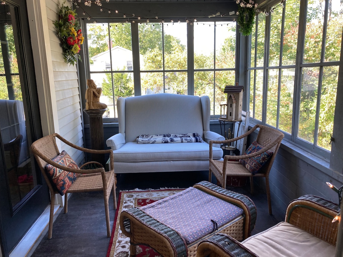 The Library is a two bedroom home with a granite kitchen, laundry, and a full and a half bathroom. It features thousands of books across many genres, from poetry to fiction. So if you like the smell of an old bookstore then this is the place for you! The steps to the second floor are very steep and narrow. The cottage is within walking distance to the shops and restaurants of Central Square Keene. Great place to get away to, or work from home with our Spectrum provided fast wifi internet.