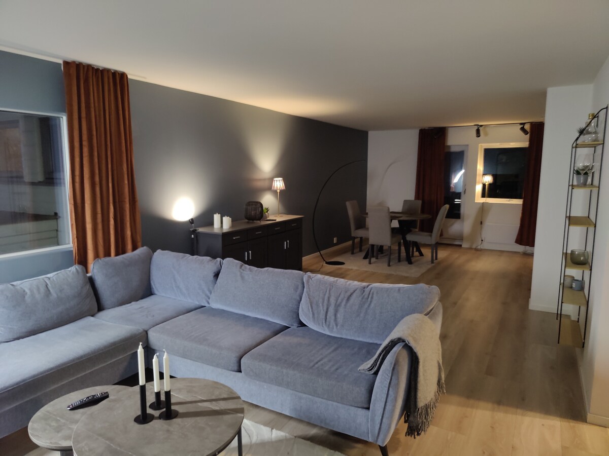 Great newly renovated apartment with 3 bedrooms located just 300 meters from the city center. Here you live reasonably and centrally, but at the same time a little withdrawn from traffic and the city center. The apartment is well equipped with what you need for both short and long stays. When you arrive you will find beds made with new bed linen and towels. Additionally you will find toilet paper/tissue paper, soap, dishwasher detergent etc for a few days. If you stay a little longer, you must expect to buy these yourself. Welcome :)