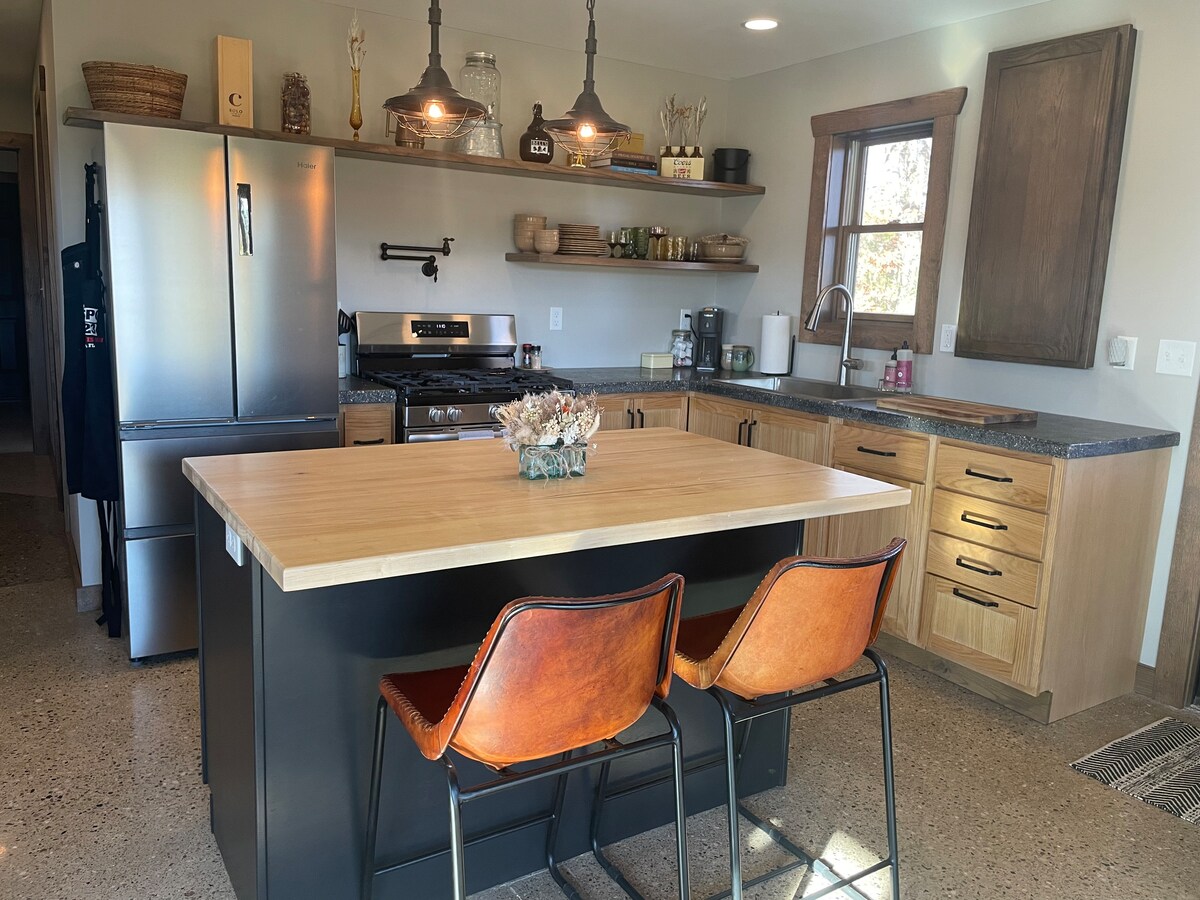 The Garden Suite ensures restful nights with 1 queen Murphy bed in the living room, 1 full in the bedroom, and 3 fold-out mattresses. The suite features a kitchen, dining table, bathroom, massage chair, cozy sitting area, and a desk. Whether enjoying a soap-making class, soaking up the sun poolside*, evenings around the bonfire, a walk in the woods, or exploring your artistic side in our art studio, this stay offers the perfect blend of relaxation and inspiration. *Pool open mid May-September.