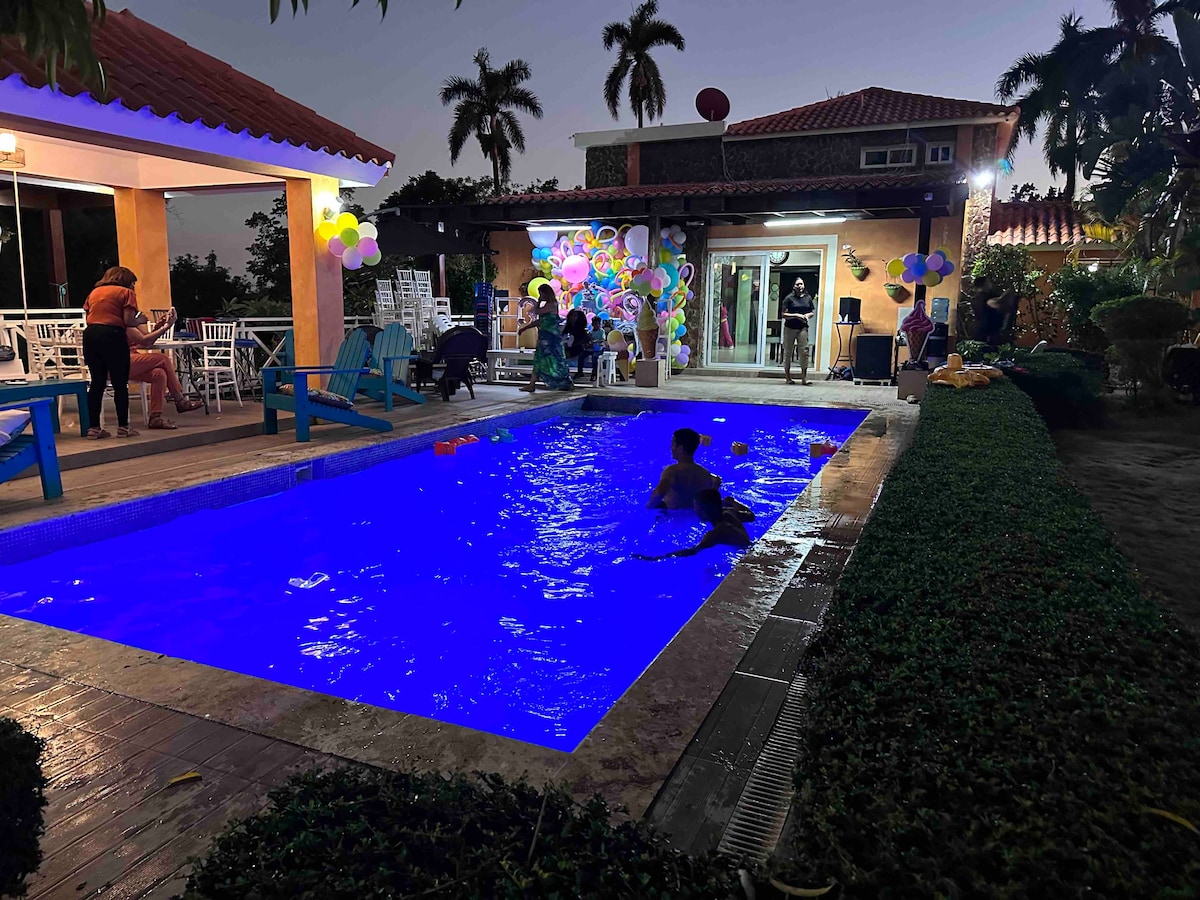 Welcome to Don Solano, your ideal getaway to disconnect as a family Enjoy a large swimming pool, cool balconies, and rooms designed for comfort, just 40 minutes from Santo Domingo Este. Spacious areas allow each person to find their own environment and feel completely comfortable. With capacity for 20 guests, it's the perfect place to share unforgettable moments. Create new memories with your loved ones today. (For events, text via message)