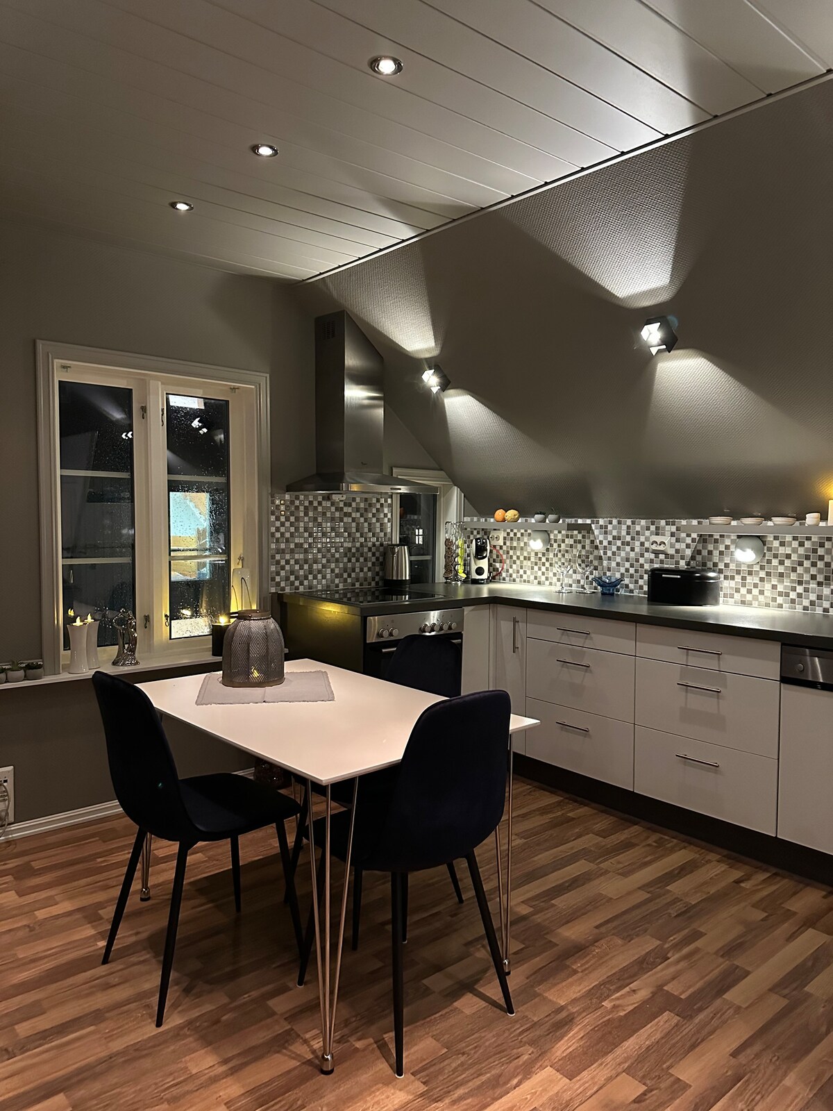 Fin og koselig nyrenovert loftsleilighet i delikate farger og interiør, sentralt i Haugesund sentrum. Leiligheten har fullt utstyrt kjøkken. Bad har både vaskemaskin og tørketrommel,vaskemidler På soverommet er det 1.40 m.dobbelseng. Det er wifi ,altibox, og TV i stuen. Koselig uteområde med pergola og egen bakgård. Leiligheten ligger i kort gåavstand til alle byens fasiliteter som spisesteder, handlegate og utesteder. Edda kino, Cibo pizza og Strand restaurant, er kun to minutter unna
