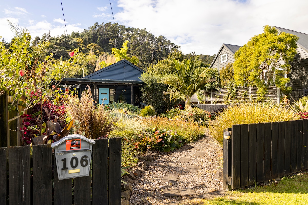 Fabulous on Thames coast. Stylish, well appointed 1 bedroom cottage, open plan living, dining, kitchen with direct access to lovely outdoor relaxation areas. A quiet haven off the main road, only 100 mtrs easy walk to beach reserve and fishing. Enjoy the birdsong, sunrise and daytime hours in the shady, tropical garden at the rear of the house with its generous outdoor seating and dining facilities, and take in the sunset from the deck and coastal garden in the front of the house.