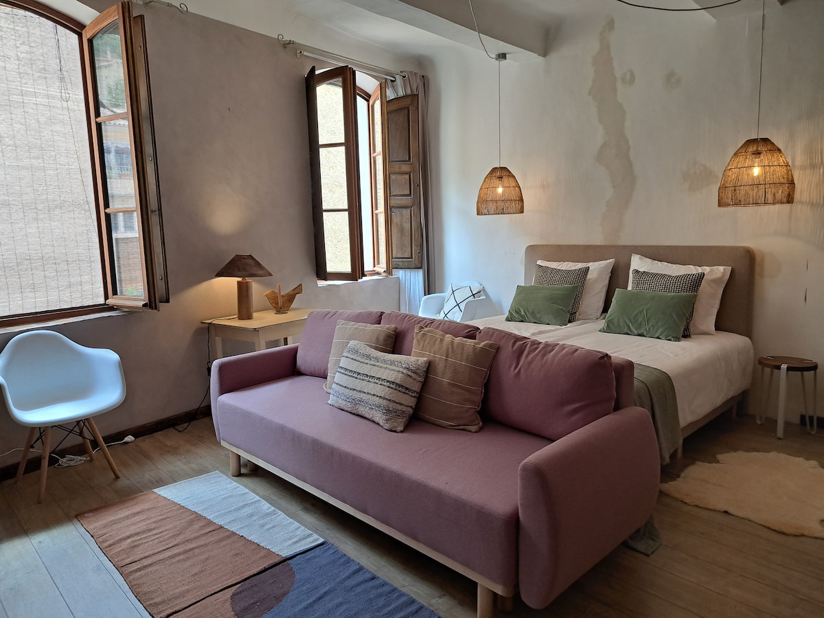 The 30 m2 studio is located under the vaults of the old bread oven of our house. The living room consists of a small kitchen equipped with the essentials, as well as a sleeping area with a double bed; at the bottom of the vaults hides a small independent bathroom. Isolated in the countryside at the foot of the mountains, the private terrace will offer you a beautiful view of the Durance Valley. Ideal for relaxing, you can also enjoy on-site walking trails and the climbing site.