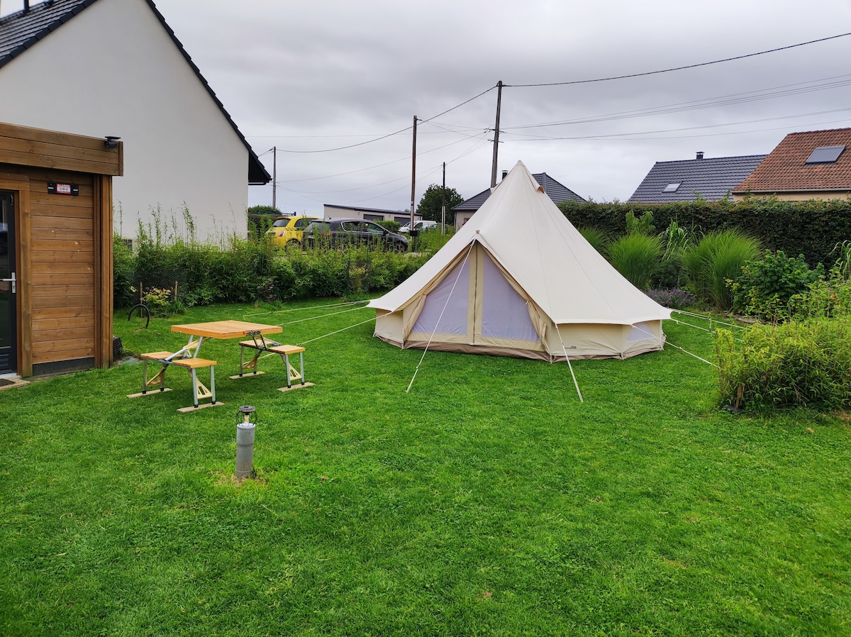 Bell tent located on a green, soothing, ecological mini campsite called L'île de Bambecque in French Flanders. Connection to "The North Sea Route" nearby. An added value for nature lovers. Relax on this site where eco-social forest farming is the baseline. Our fire pit with tripod is not only for cooking, but also for connecting. You can bring your own sheets and towels.