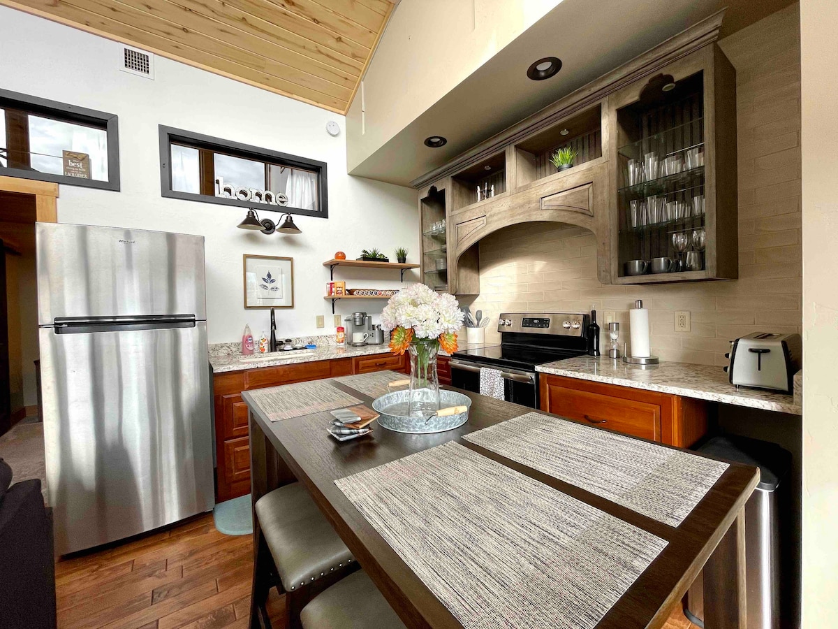 Staying in a Strawbale home is a special experience! The thick adobe walls create a cozy and warm feeling that a traditional stick built home just can’t. Enjoy the vaulted ceilings, heated floors, new appliances and natural sunlight. Backyard, fire pit and gas grill as well as outdoor eating space. The view from the kitchen looks out on a private pond and local historic (retired) Rio Grande Railroad bridge. Some scenes from the movie Butch Cassidy and the Sundance Kid were shot by this bridge!