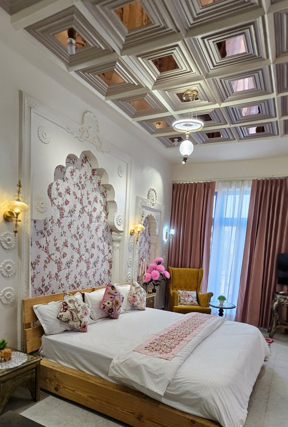 Welcome to Jaipur! Nestled in the most central area of the Pink City, this unique and aesthetic 1BR studio apartment with Juliet Balcony is artistically designed to make sure you enjoy the most luxurious stay along with all the amenities. Just 1km from main Jaipur railway station, it is the perfect spot from where you can easily explore Jaipur like a local. From here, the Walled city is just a few minutes ride from tuk tuk so you can get to all the most popular attractions of Jaipur city easily
