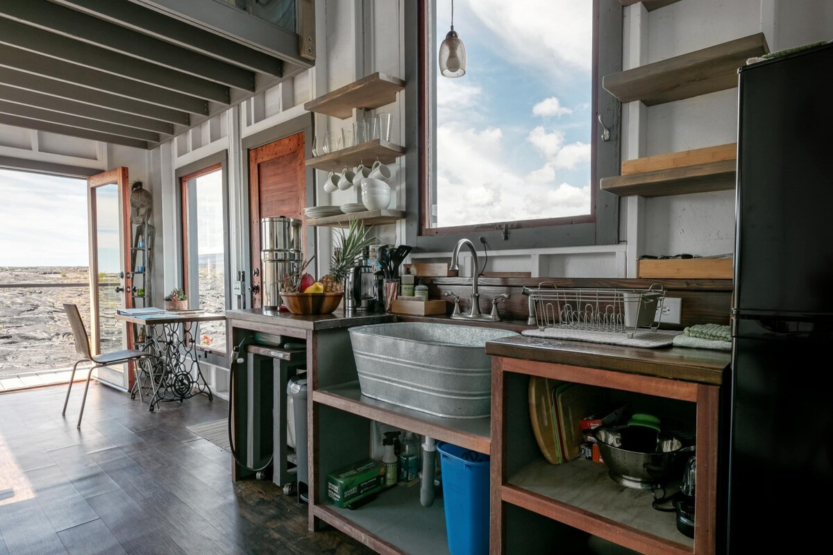 Come celebrate your Life & new beginnings at the acclaimed Phoenix House! Featured in countless media, this epic, off-grid tiny home creation at the feet of an active Volcano has won the hearts of countless international visitors.. Enjoy a magic, memorable vacation in this unique, custom made tiny temple on some of the newest land on Earth ~ This custom tiny house was designed by Will Beilharz and built by ArtisTree Homes. Considerate Caretaker lives nearby on site.