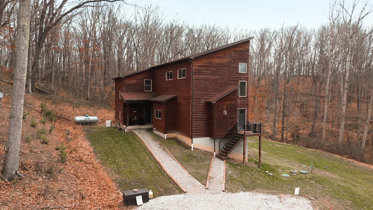 A cozy, simpler kind of living. Enjoy 12 private acres surrounded by Wayne National Forest in Ohio's Hocking Hills region. Thoughtfully designed and inspired by the surrounding landscape with natural tones and textures throughout the cabin's interior. Conveniently located 25 minutes or less from countless Southeastern Ohio attractions to include: all Hocking Hills State Parks, Ohio University, and Zaleski State Forest. Amenities include a 6-person hot tub, yoga studio, and private trail.