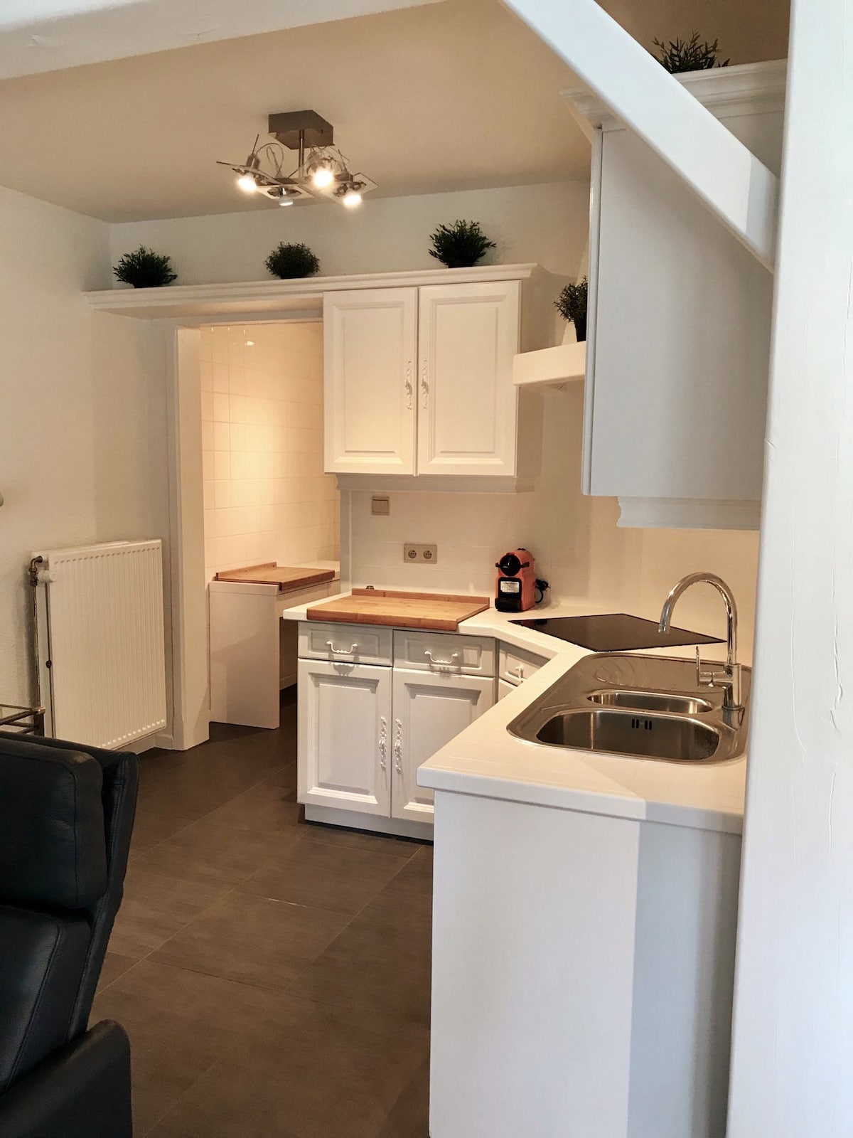 Centrally located accommodation. There is a separate entrance and via the stairs you enter all areas. A newly furnished kitchen with all kinds of amenities and adjoining the sitting area with TV and WiFi. There is a separate bedroom, a bathroom with shower and bathtub and a separate toilet. The residence is centrally located with a supermarket, breakfast places, and a restaurant within walking distance. There are various hiking trails and cycling routes, cycling through the trees and in the water. Bikes can be stored in a closed space.