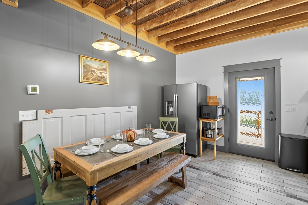 Enjoy a stay of charm and heritage at a 1906 Brown County home known as Helmsburg Station. It was originally owned by the Helm's of Helmsburg, IN and has been completely renovated from the exterior walls inward during 2019. Helmsburg Station pays tribute to the history of its quaint location as the original direct route from Indianapolis to Brown County via the railroad line. From Helmsburg, the rest of the route to Nashville was by horse and wagon or by foot. Check out our new drone photos!