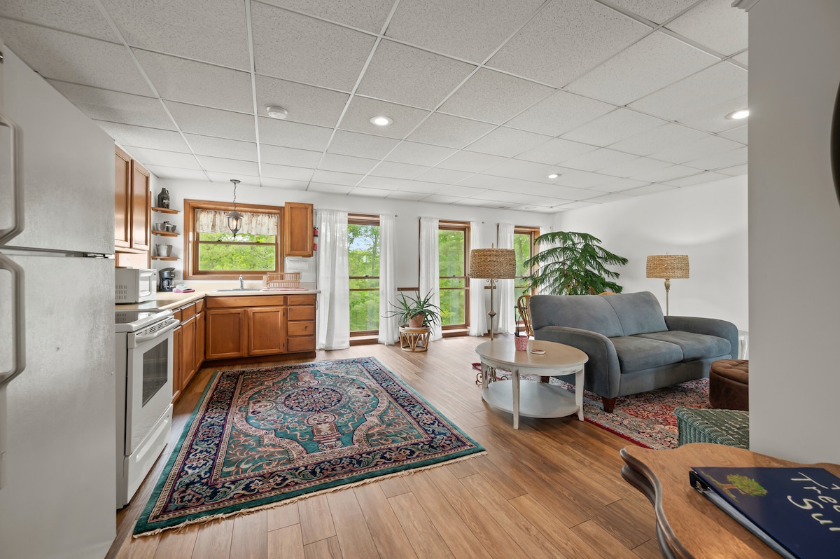 Hideaway Hollow is a cozy, private guest suite attached to the owner's home. Please read the entire listing before booking. Located on the north side of Bloomington, it is just 15 minutes from downtown Bloomington, the IU stadium, and an hour from Indianapolis. Nestled in the forest, the space offers a covered porch with a private entrance, a spacious living room, a kitchenette, and a master bedroom with a full bath.