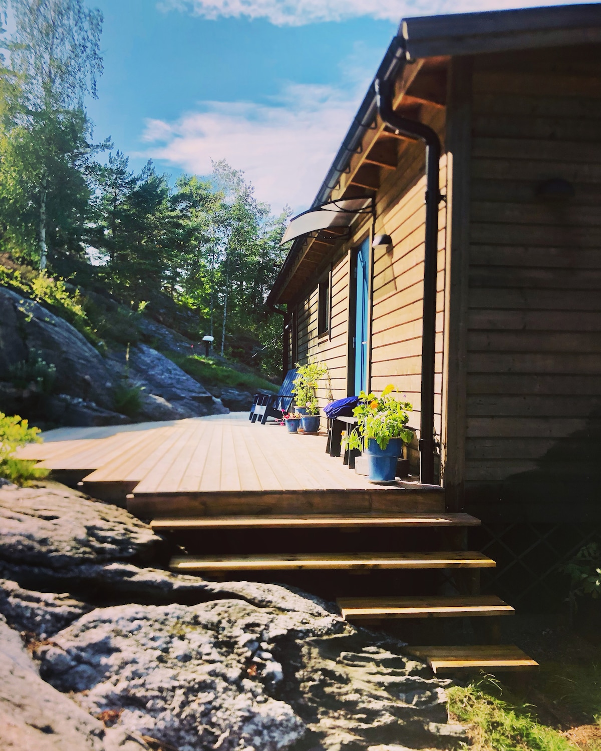 Nybyggt hus som ligger intill vårt bostadshus men avgränsat och med helt egna utrymmen. Vi hänger mest på andra sidan men hejar såklart om vi ser er på altanen. Liten hund vill nog hälsa också. Ta stigen ned till bryggan och bad eller promenera till Henåns levande centrum med affärer och flera restauranger. Nära till skog och mark och perfekt utgångspunkt för dagsutflykter med buss eller bil till Bohuskustens pärlor.