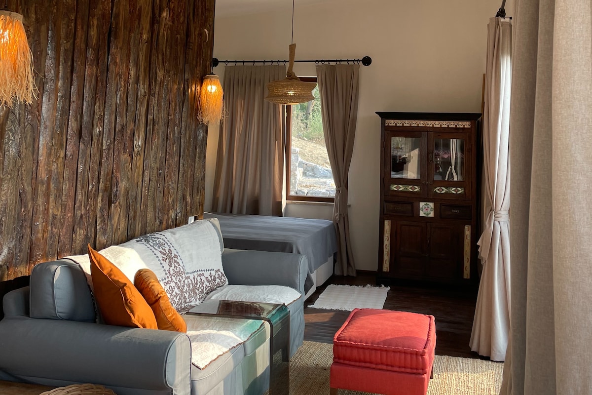 Vadi manzarasına karşı konumlanan özel sonsuzluk havuzu, günün her anında dinginliği hissettiren eşsiz bir atmosfer yaratır. Geniş bahçesinde dilediğiniz gibi vakit geçirebilir, barbekü alanında sevdiklerinizle keyifli akşamlar yaşayabilirsiniz. İki yatak odasıyla tamamen ahşap mimarisiyle doğayla bütünleşen bu özel villa, zarif detaylarla tasarlanmış iç mekânı, ferah yaşam alanı ve panoramik manzarasıyla dört mevsim konforlu bir konaklama deneyimi sunar.