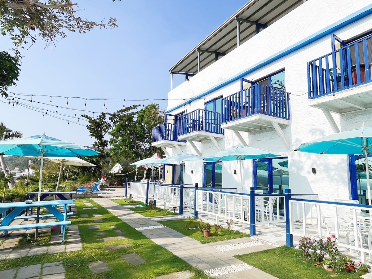 Luxury Sea View Quadruple Room (♡˙︶˙♡) The 4-person room is on the 1st floor with a private small balcony The room has LCD TV, kettle, toiletries, WiFi, bathroom, desk and toiletries, etc. Outdoor BBQ ヾ(*´ ˋ*)ノ utensils and venues are available, as well as ingredient booking services. The counter provides car booking, ticketing services, tourist information desk, luggage storage and other facilities. Guests can enjoy a range of activities in the surrounding area, including diving, snorkeling, and horseback riding. Additional services include motorcycle rental and water activity ticketing. I am always available online to answer any questions you may have ლ(•ω •ლ)