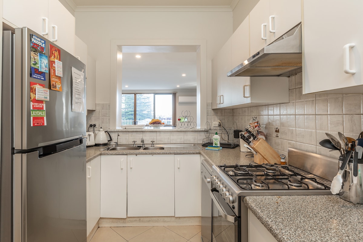 We are close to the airport, great beaches, public transport, restaurants/dining, open views. You’ll love our super comfy beds, clean, quality linen, outdoor seating on the verandah, roomy lounge (gas fire & FOXTEL), large bathroom, kitchenette (small fridge, microwave, toaster, kettle) & safe neighbourhood. We are ideal for couples, solo adventurers, business travellers. Your place is the front half of our home - separated by connecting doors. We will be on site, maybe with a foster greyhound.