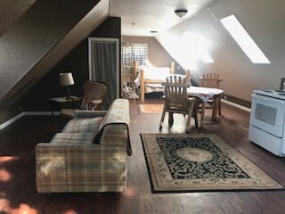 Enjoy a fully private space, featuring a cozy bedroom with a queen bed. A spacious living room with a queen sofa bed and extra seating for more guests. The green room provides a separate work space and dressing room. Farra's kitchen has all your cooking essentials including coffee, spices and more. The dining area seats four easily with room for more. The bathroom has been completely remodeled and offers a walk in shower. Free Wi-Fi, Roku and shower essentials are included.