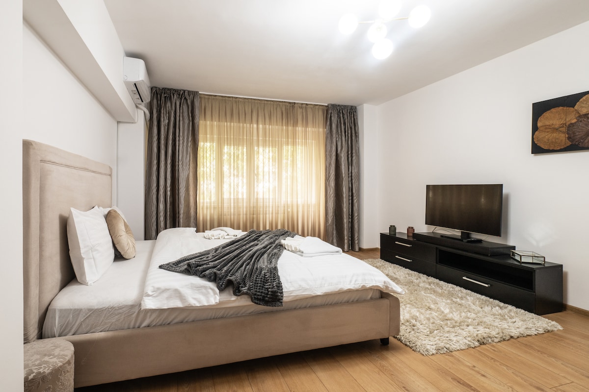 Welcome to this amazing 81 sqm brand-new apartment especially designed to care to every single need. This “home away from home” has a fully equipped kitchen, two bathrooms, one bedroom and a large balcony. This is a perfect choice for those of you who want to enjoy a quiet and relaxing stay, but also be near some of Bucharest’s biggest attractions.