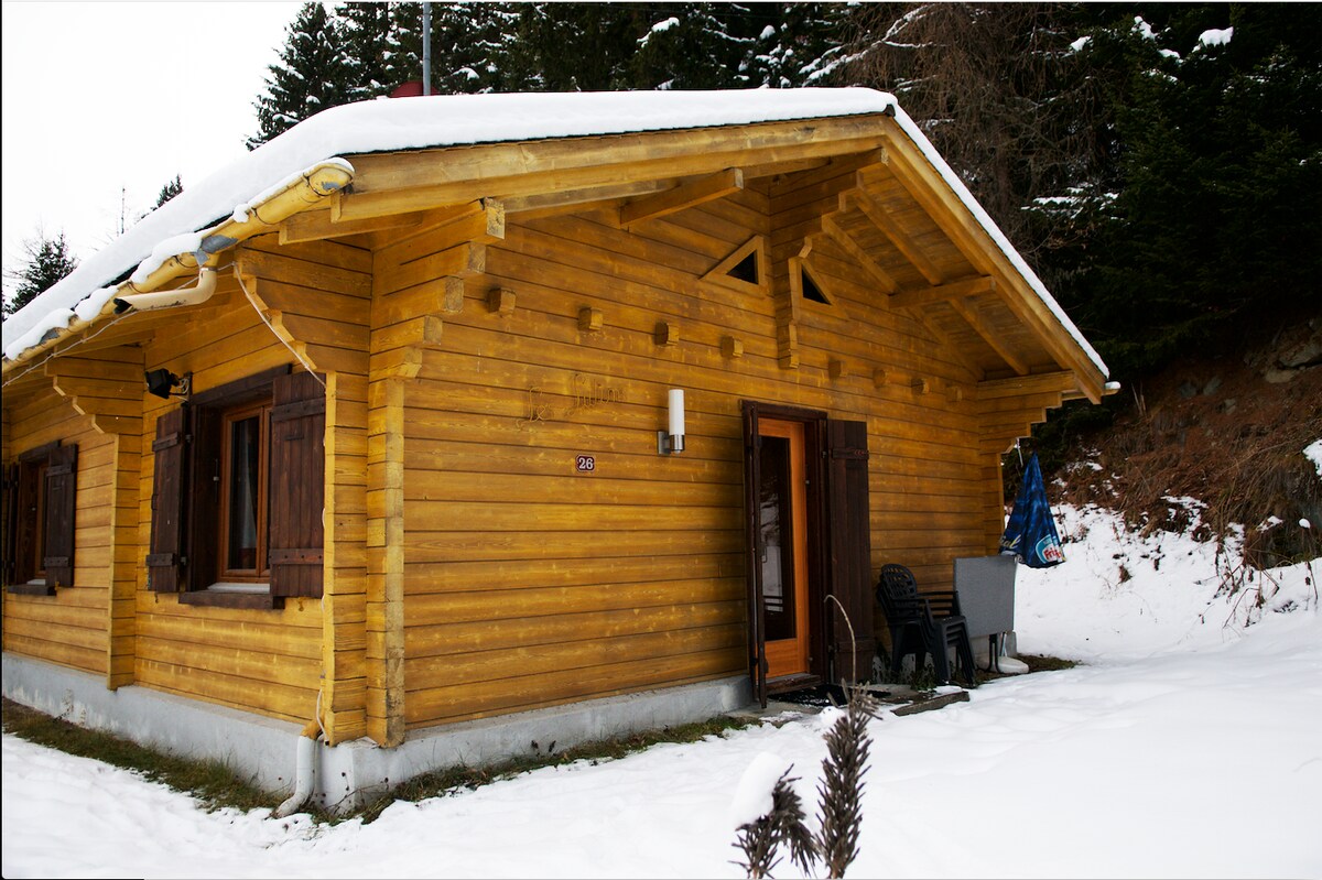 A very cosy little chalet (62m2) 2 pers at the top of the Lodge , very quiet location. In front line facing the mountains, sight entirely released with breathtaking views over the Swiss Alps and its sunsets. A little away from the turbulent and noisy ski resort but still reachable in one minute by car or 500m walk to the free ski bus. Free outdoor parking. We are all ski teachers and can provide ski lessons at attractive rates