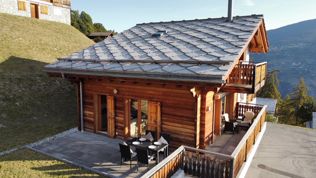 This small, private Swiss chalet is cozy comfortable retreat for one or two persons. The balcony offers a magnificent view of the Rhone Valley and Swiss Alps of Valais. Ideal for nature-lovers or those who simply want to just get away to relax and breathe in the Swiss mountain air. The chalet acts a point of depart for mountain walks or hikes, bike riding, snowshoeing or even cross country skiing in the winter time. Ski slopes and thermal baths can be reached in around 30 minutes by car.