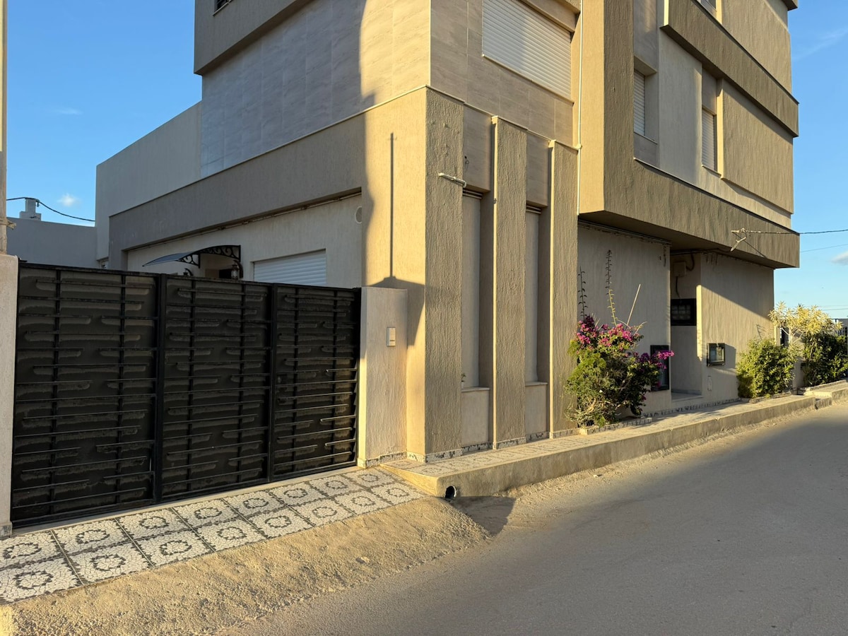 stylish and central accommodation in elkantaoui Sousse. Very well-equipped kitchen, garden on two sides and accommodation 2 minutes' walk from the beach, 8 minutes from Sousse Mall, 4 minutes from Sousse golf and port el Kantaoui. House built in June 2023. full appliances ( dishwasher / washing machine/toaster/food processor/ kettle /coffee machine/pancake machine) Ideal for holidays in Sousse very quiet neighborhood in front of the Soviva hotel. No need for your suitcases