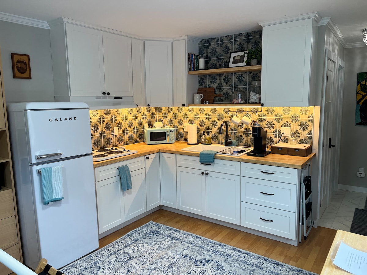 Enjoy a beautiful lake and mountain view in modern style! Relax in our luxurious spa-like bathroom with soaking tub, two shower heads, and heated floors, and enjoy cooking in our unique retro kitchen. Only 2.5 miles to the famous Homer Spit and minutes from all amenities, galleries, breweries, charters, hockey rink, and the airport.