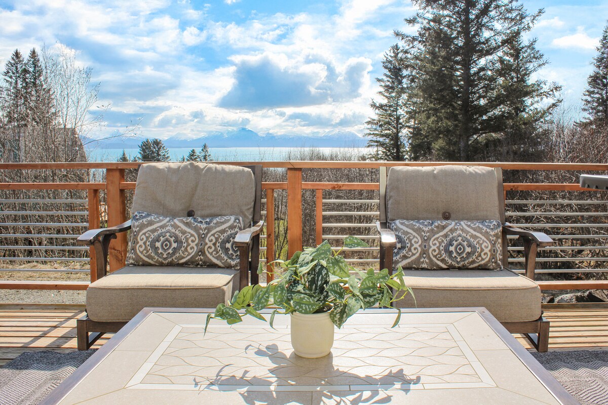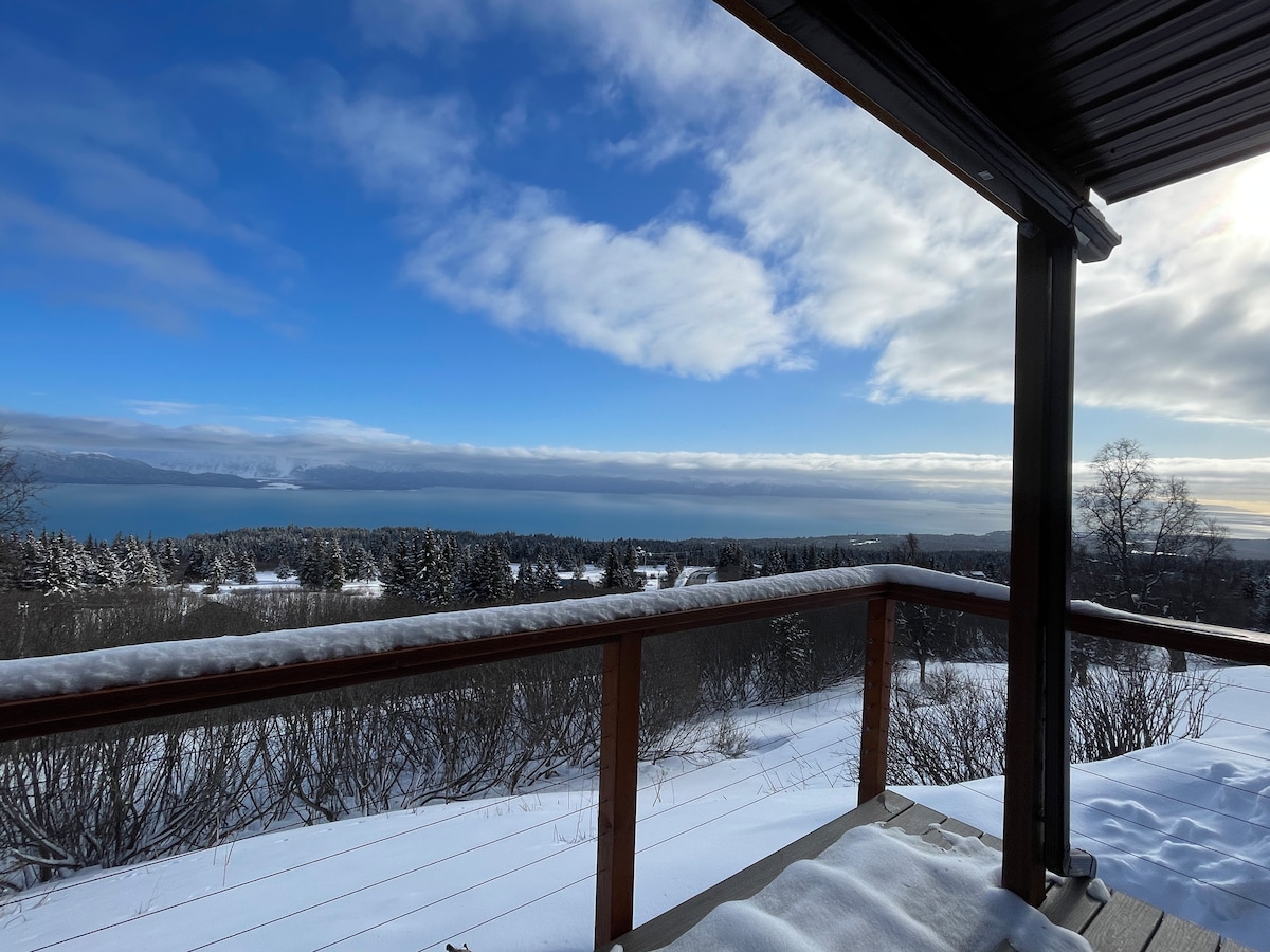 Perched on a bluff with 180 deg views of Cook Inlet and Kachemak Bay. In the backdrop, Alaska’s Ring of Fire volcanos, Augustine, Iliamna, Redoubt, and Mnt. Douglas. Privacy of 2 acres of outdoor entertainment and only 2 minutes from Homer’s nightlife, fine dining, shops and art galleries. Comfortable for parties up to 6 and cozy enough for a couples getaway.