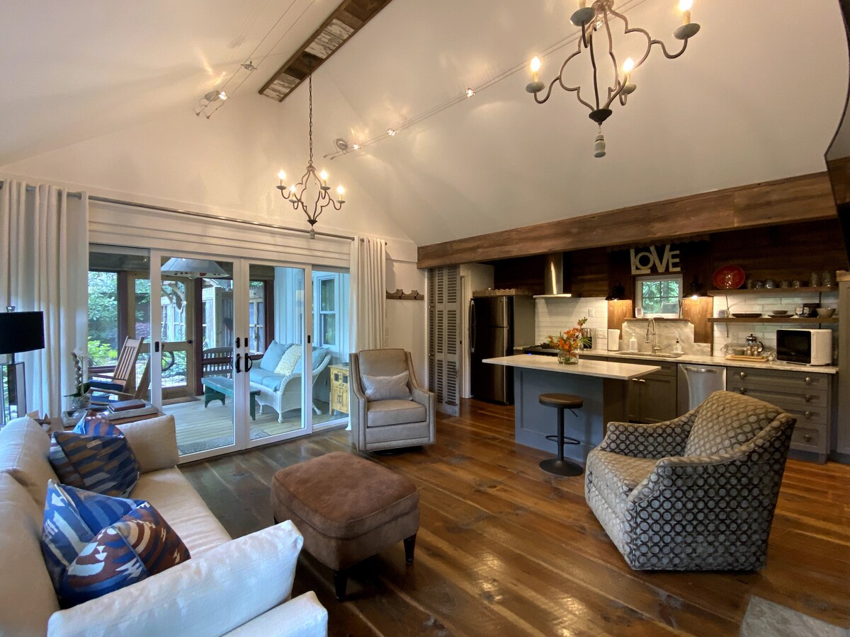 This charming, custom-designed cottage offers serene lake views and overlooks botanical gardens, where you’ll find trails that wind around the lake. A short walk takes you to Main Street. The spacious master suite features a king bed, while the fully equipped kitchen and private workspace offer comfort and convenience. Enjoy the peaceful entry courtyard with a water feature, and a cozy screened porch. NOTE - there is an open doorway to the master suite. NO pets or children. FIREPLACE NOT IN USE.