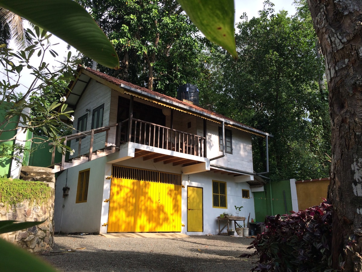 SLTD APPROVED ACCOMODATION -Yoga Shala is available for own practice, but due to Covid-19 we cant provide mats, please bring your own- 3 beautiful self-catered Studios for yoga and nature lovers located in paradise just minutes away from the turquoise waters of Narigama beach, best surfing beach in Hikkaduwa, and with fully equiped kitchen, hot water, and stunning views and wildlife by the Yoga Shala!