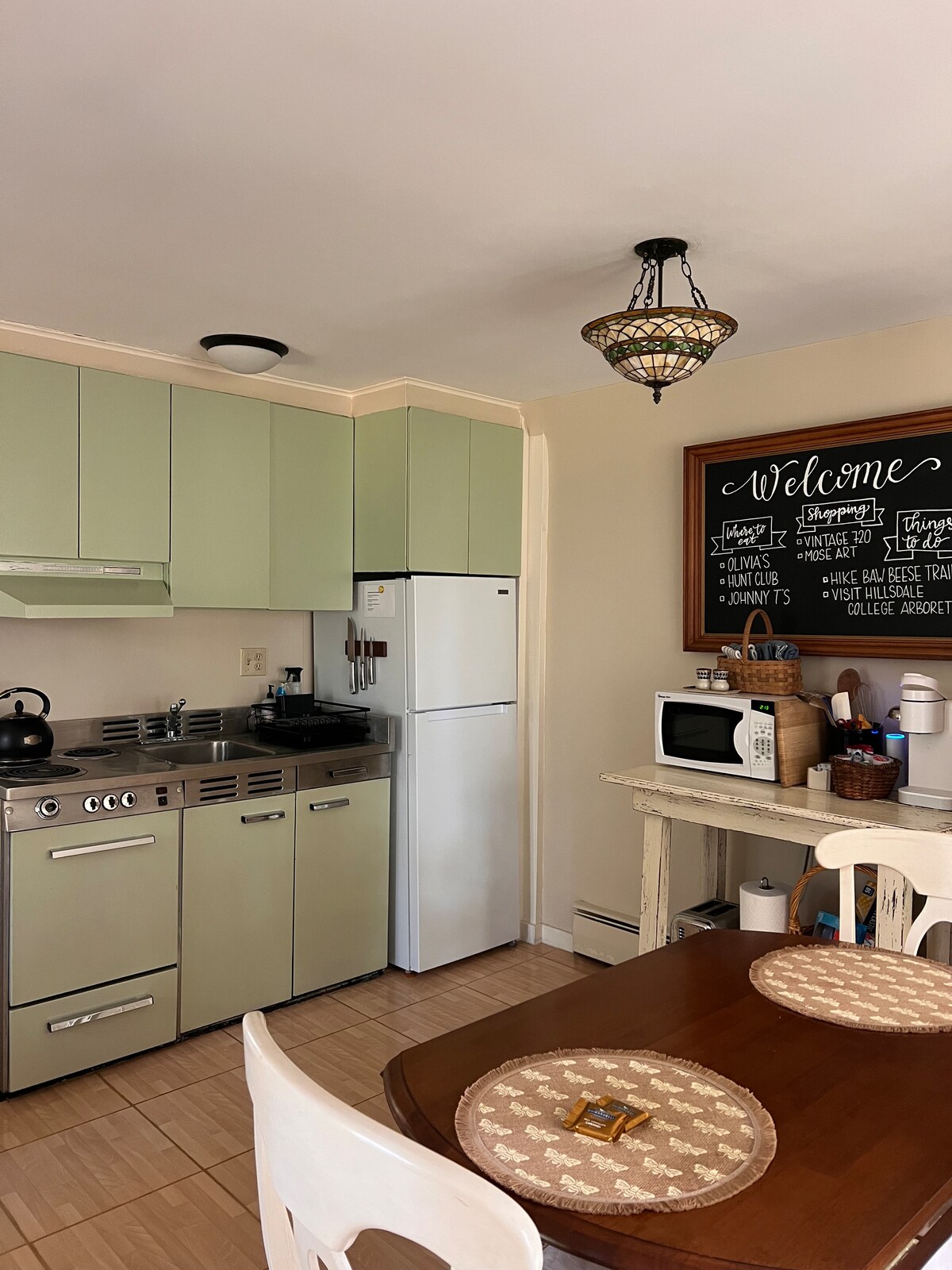 This recently renovated home offers the perfect blend of historic charm and modern comfort, with original architecture, cozy interiors, and a welcoming porch. Ideal for both short- and long-term stays, with a fully stocked kitchen and four comfortable beds. Walking distance from Hillsdale College and directly across from Handmade sandwich shop. Exclusively 100% cotton sheets and non-toxic cleaning products are used! (Be sure to specify the accurate # guests when booking a stay at the Cottage!)