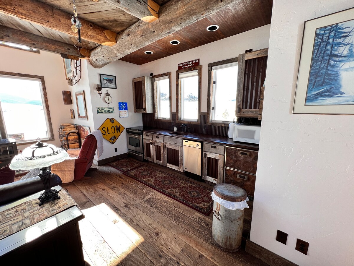This cabin located 10 min west of Creede has amazing views of the Weminuche wilderness and is walking distance to world class fly fishing on the Rio Grande river. This cabin gives you easy access to outdoor activities and Creede, including the Reparatory Theater. This is the perfect base camp for your next adventure. Wake up to elk grazing in the meadow, explore during the day, and relax at night in this custom built cabin with unique features from the local area.
