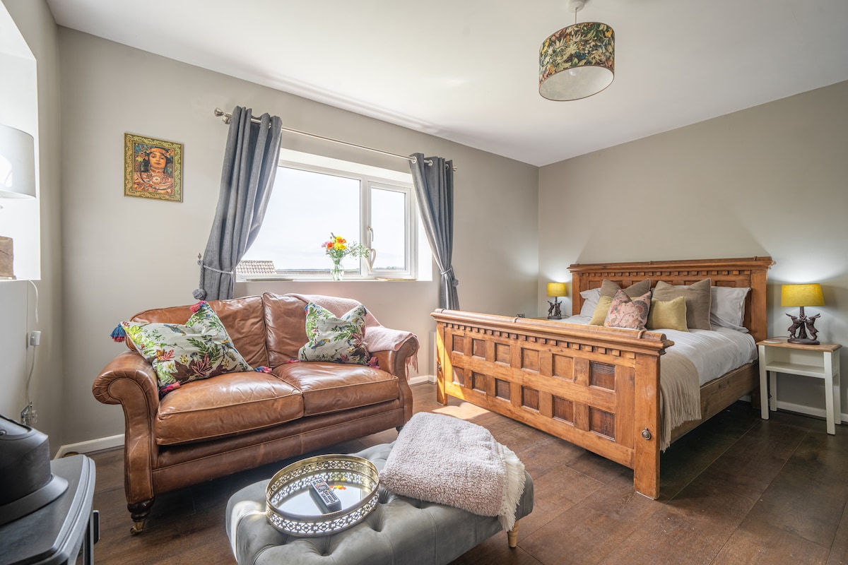 Cosy space, beautiful views, self check in, Wifi, Laptop friendly workspace, Free parking. Discounted price for longer stays. We are superhosts with fantastic reviews on Airbnb for 8 years. A relaxed calm space ideal for overnight stay or short break for couples or small family, business workers welcome. Luxurious Double bed en suite Shower Room, modern kitchenette. Tourist Spots: Thermae Bath Spa/Roman Baths, Longleat Safari Park, Stonehenge, Wells Cathedral. Cheddar Gorge, Glastonbury Tor.