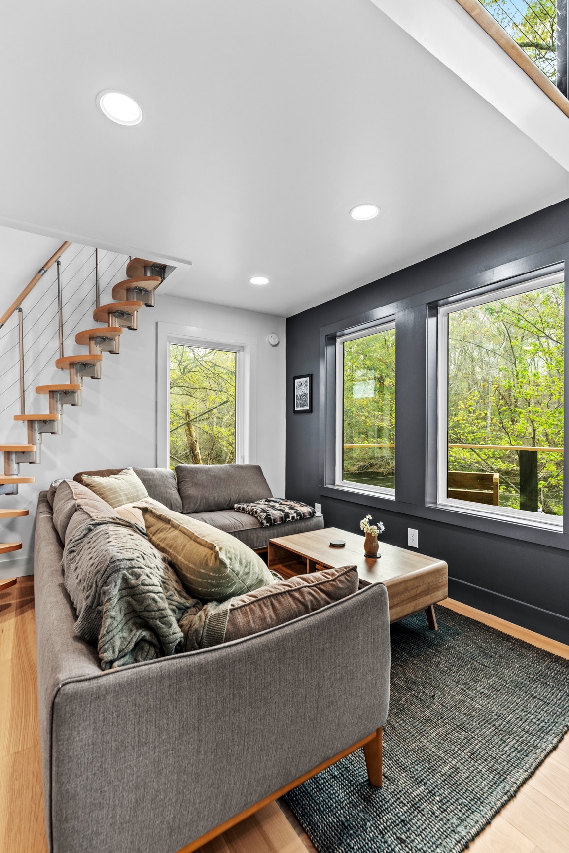 Perched on the side of a cliff with spectacular views of the mountains of the Cumberland Plateau and Sequatchie Valley, Cliffside is a unique contemporary Scandinavian-style property. Start your day with espresso or coffee from our Nespresso machine in front of the large picture windows. Unwind with a soak in the hot tub, sunset on the deck, a chat around the firepit, or kayaking on the nearby lake. Located on Dayton Mountain near many hiking trails, it is only a 20-minute drive to Dayton.