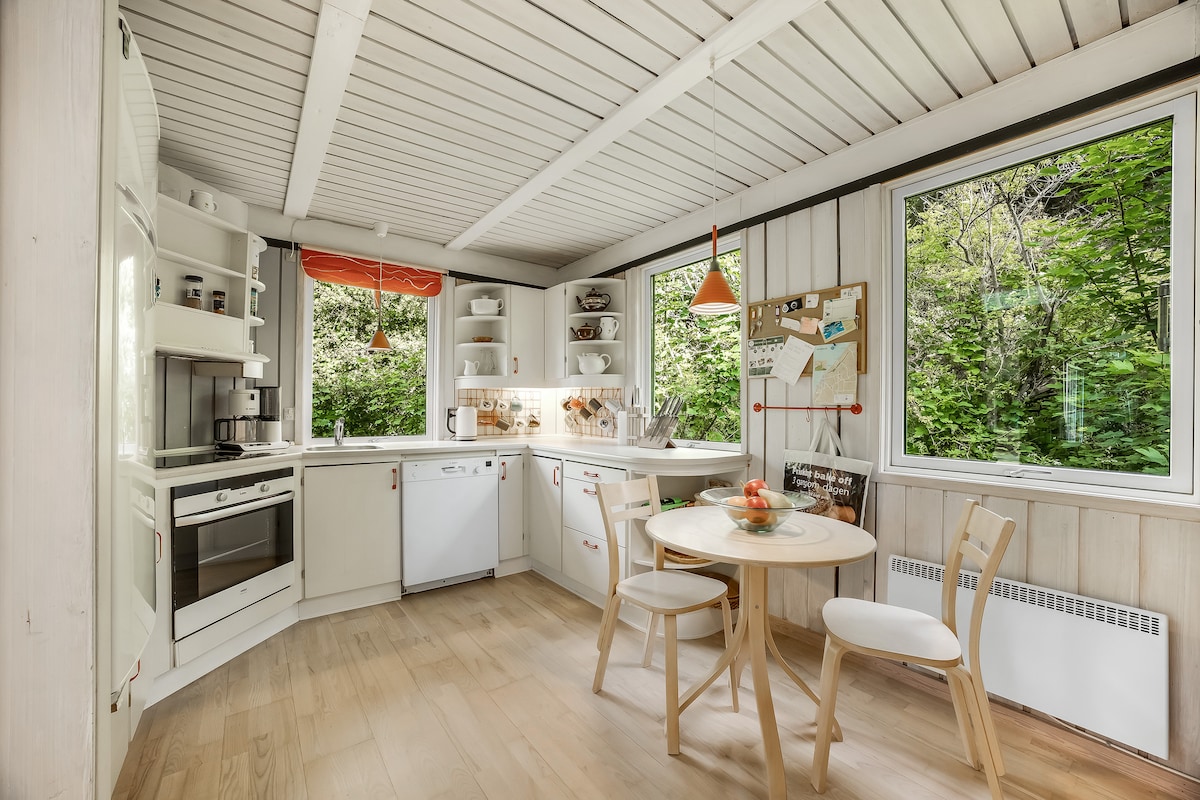 "Lille-Haven" is the place if you want to stay close to everything, but with nature right outside the door. The house is located on a gravel road, surrounded by a little forest, outside the windows are grazing cows. 200 m to bus connection (Aalborg-Sæby-Frederikshavn), 8 km to beach (Sæby). Skagen 60 km. Fårup Sommerland 50 km. Voergård Castle 9 km, Voer Å – canoe rental 9 km. The house is pet and smoke free, built in 2014 and decorated bright and delicious with all modern comforts. Learn more at www.lille-haven.dk