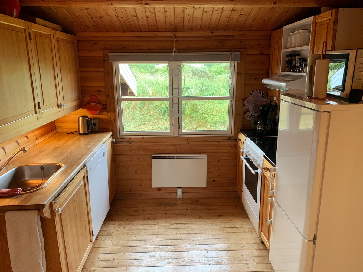 Family-friendly log cabin 500 meters from the sea