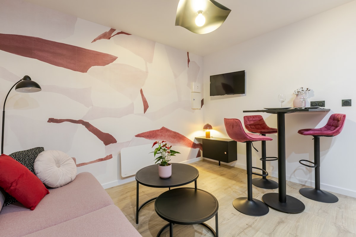 I'll provide you with my lovely refurbished studio. Consisting of a bathroom with a bathtub, an equipped kitchen as well as a living room with a sofa bed. It is located on the second floor without an elevator in a typical Alsatian building with its attic and exposed beams. This accommodation is located 15 min drive to Strasbourg city center, 20 min bike/bus, 5 min to a highway ramp (exit 50), 5 min to the European Parliament, bus line C3 stop CHEVAL BLANC.