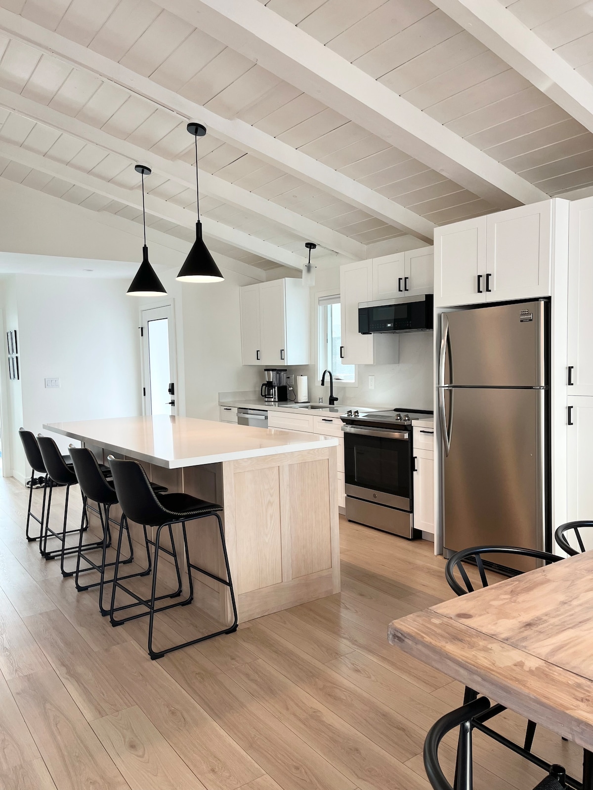 Spacious, chic beach house designed for comfort and style, ultimate blend of modern amenities & playful charm. With the beach & harbor steps away, savor the sights & sounds of the Pacific Ocean throughout your stay. Enjoy surfing, SUPing, or kayaking. Take long walks on the beach, & witness breathtaking sunsets. This small beach town has much to offer, but you’ll be tempted to just stay in & cozy up on the comfy sofas, take a cocktail to the rooftop deck, or play ping-pong in the garage.