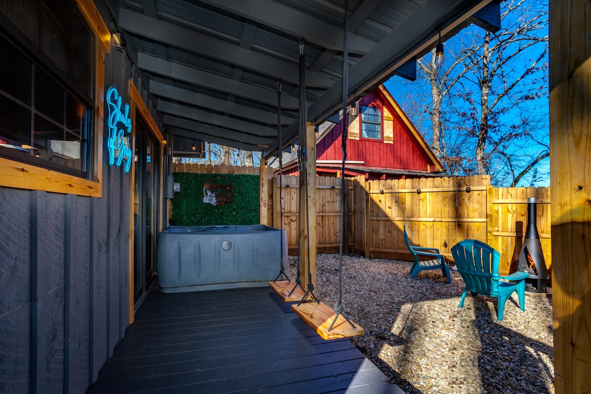 Shades of Gray" - a tiny home style cabin w/ huge amenities and modern flair in the heart of Pigeon Forge 5 minutes to the pkwy/ 7 to "the Island." Located in the tiny cabin village "The Summit at Ridge Top" comprised of 5 other tiny cabins w/ privacy built into ea cabin. Huge views of Mount Leconte off the deck. Fire pit. Hot tub & Swings under a covered porch. 1 Bd/1 ba. Eat in full kitchen with breakfast bar/workspace. Fireplace. Convenience. Style. Modern, Cozy. In the heart of Pigeon Forge