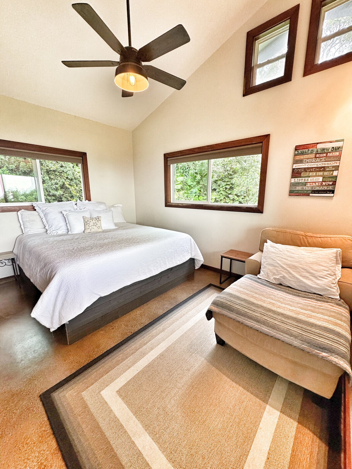 Enjoy all the comforts of home in this stylish guesthouse in the heart of Kailua Kona. This detached one bedroom ohana is centrally located - just minutes from the airport, shops, restaurants and some of the best beaches on Hawai'i Island. Experience Hawaii away from the hustle and bustle of resorts and overcrowded condominiums and stay where the locals live! The designated parking space is just steps from the front door. Private, clean, and convenient.