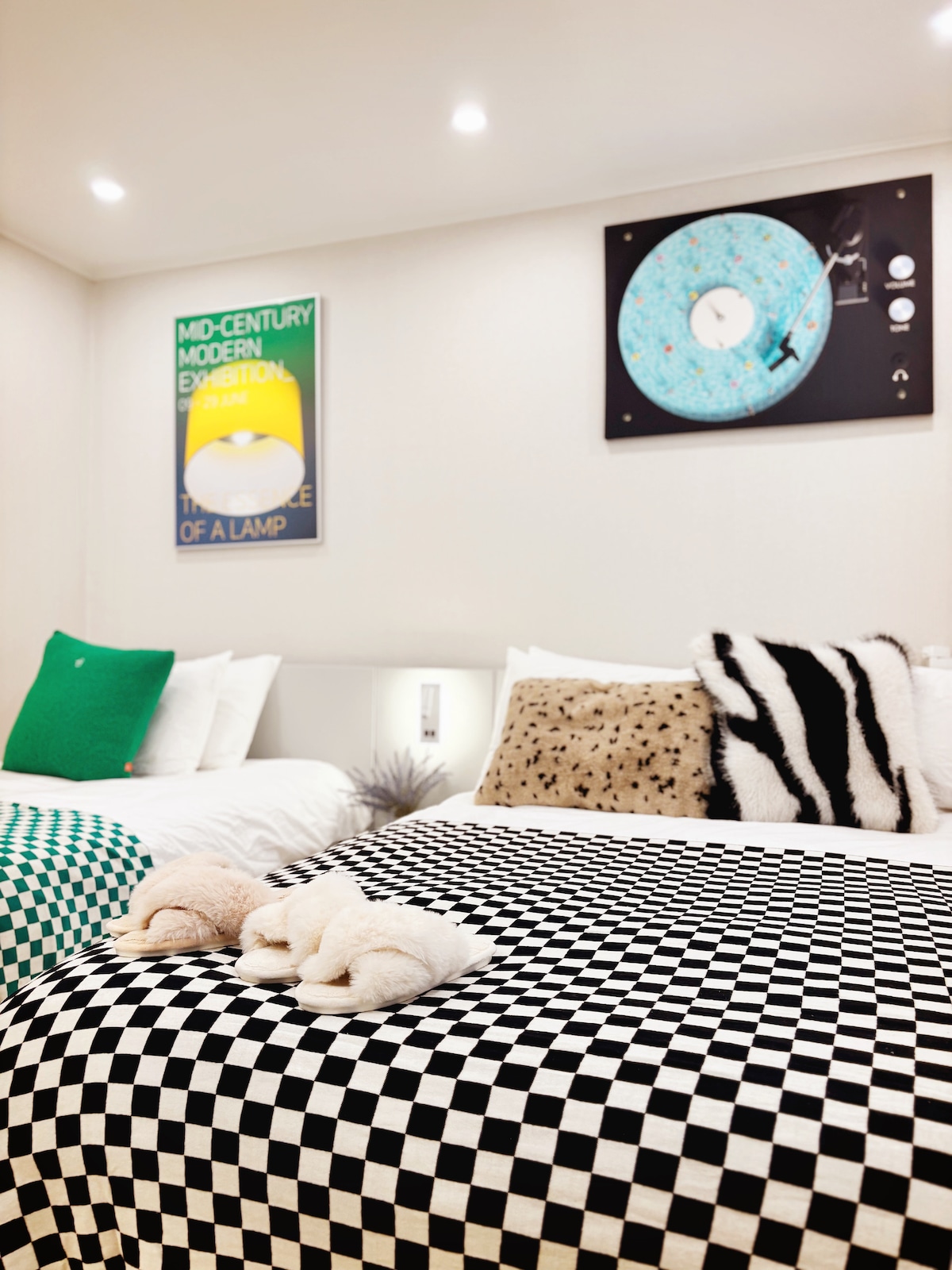 ★A large spacious room (max 8-10 people) ★ Individual canopy per group on the Rooftop - cozy and comfortable ★Modern and newly furnished interior ★Just 4 minutes from Hongdae Univ. Station on quiet and clean street ★Wifi, cable TV ★Hotel-style bedding ★Communication possible in all English, Chinese, and Korean ★Luggage placing in 3F blue locker from 12PM ★3PM check-in. 11am check-out ★ROOFTOP is shared with two teams. but well sectioned. Just like Private.