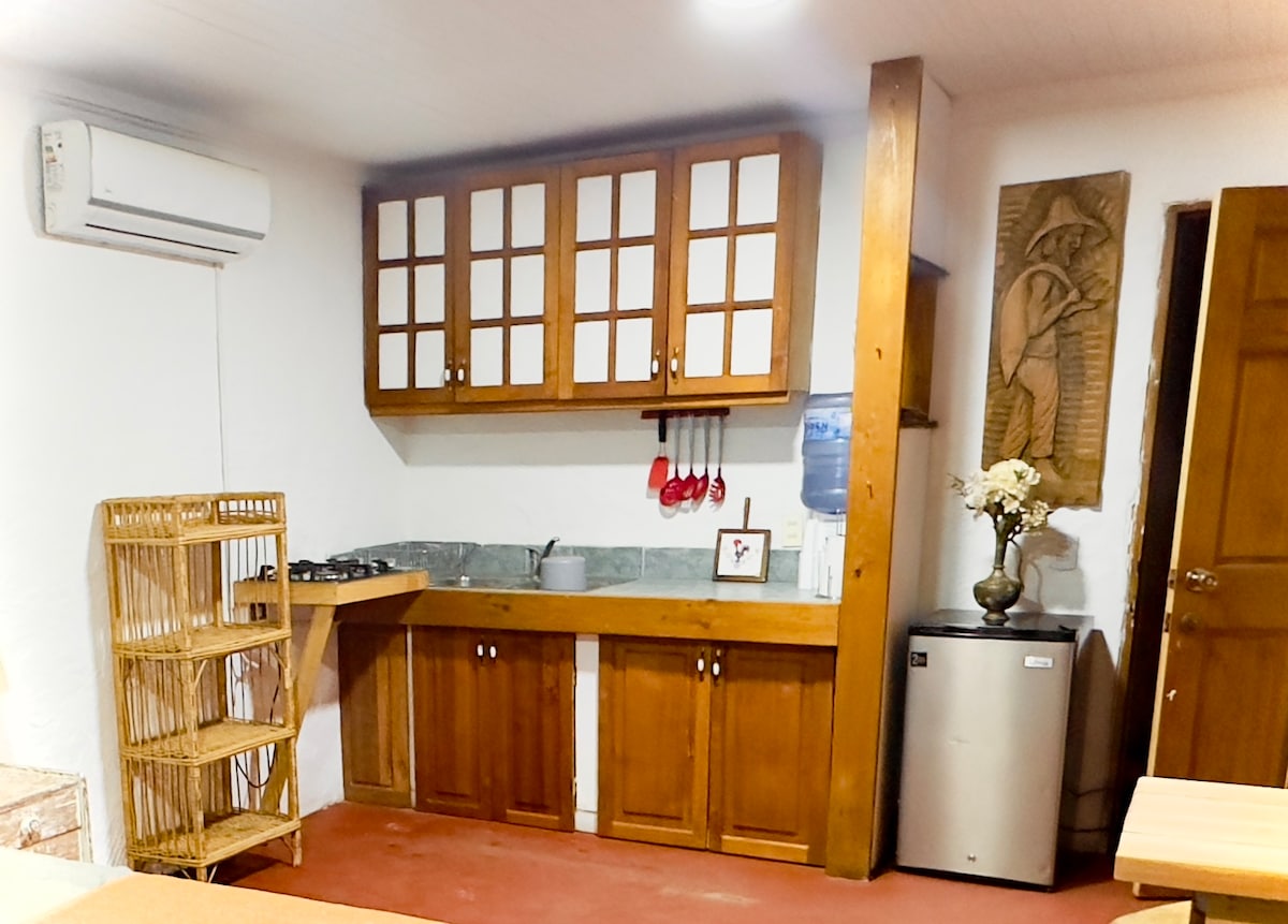 A small cabin ideal for nature lovers who want to relax, be calm, and feel the energy of the mountain. It is located at the foot of Lican Hill, 10 minutes from San José village. It has a beautiful panoramic view, with its own trails and rest areas. It has a room with a double bed that can be adapted to 2 single beds, a bathroom, a small equipped kitchen, a desk and a terrace. You get to the place by walking up a mountain trail. It is advisable to bring a backpack.