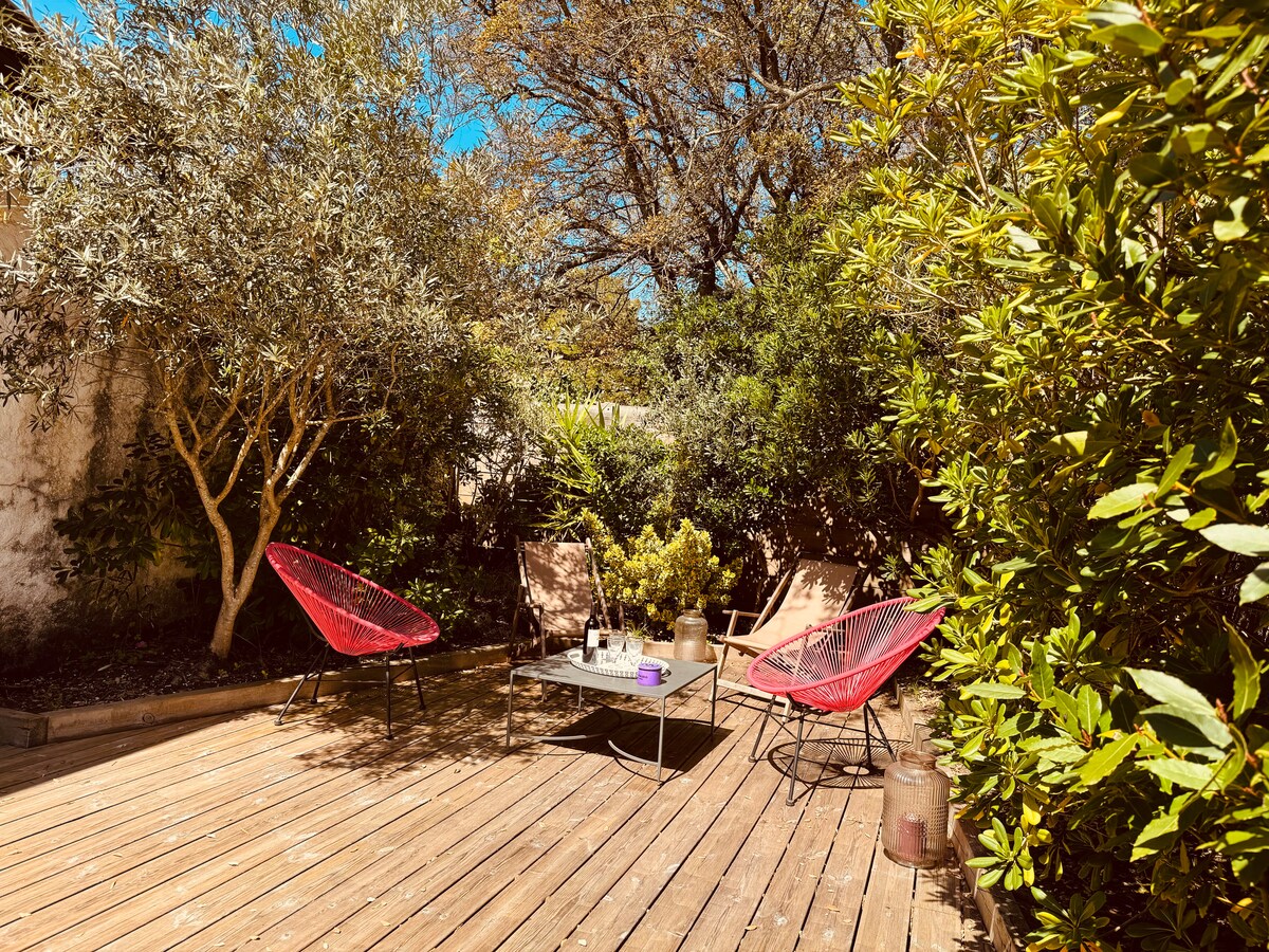 Enjoy a stylish experience at this centrally-located place. Beautiful townhouse completely renovated 200 m from the beach on foot, in the heart of the Golden Triangle of Capbreton. Fish market 250 m away, supervised beach 200 m away, restaurants and amenities within walking distance. Wooden outdoor area with outdoor kitchen plancha and sink