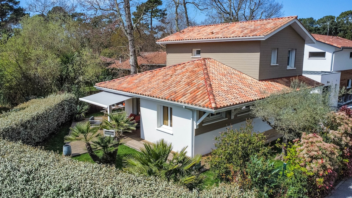 Discover our fully renovated Basque-Landaise villa, ideally located in Hossegor, at the end of a peaceful cul-de-sac and not overlooked. In a dominant position, enjoy a 140 m² south-facing terrace with views of the forest, ideal for your meals and moments of relaxation. Just a 15-minute walk to the lake and downtown, you're in the heart of a neighborhood directly connected to bike paths leading to the ocean, lake, shops and Surf Zone