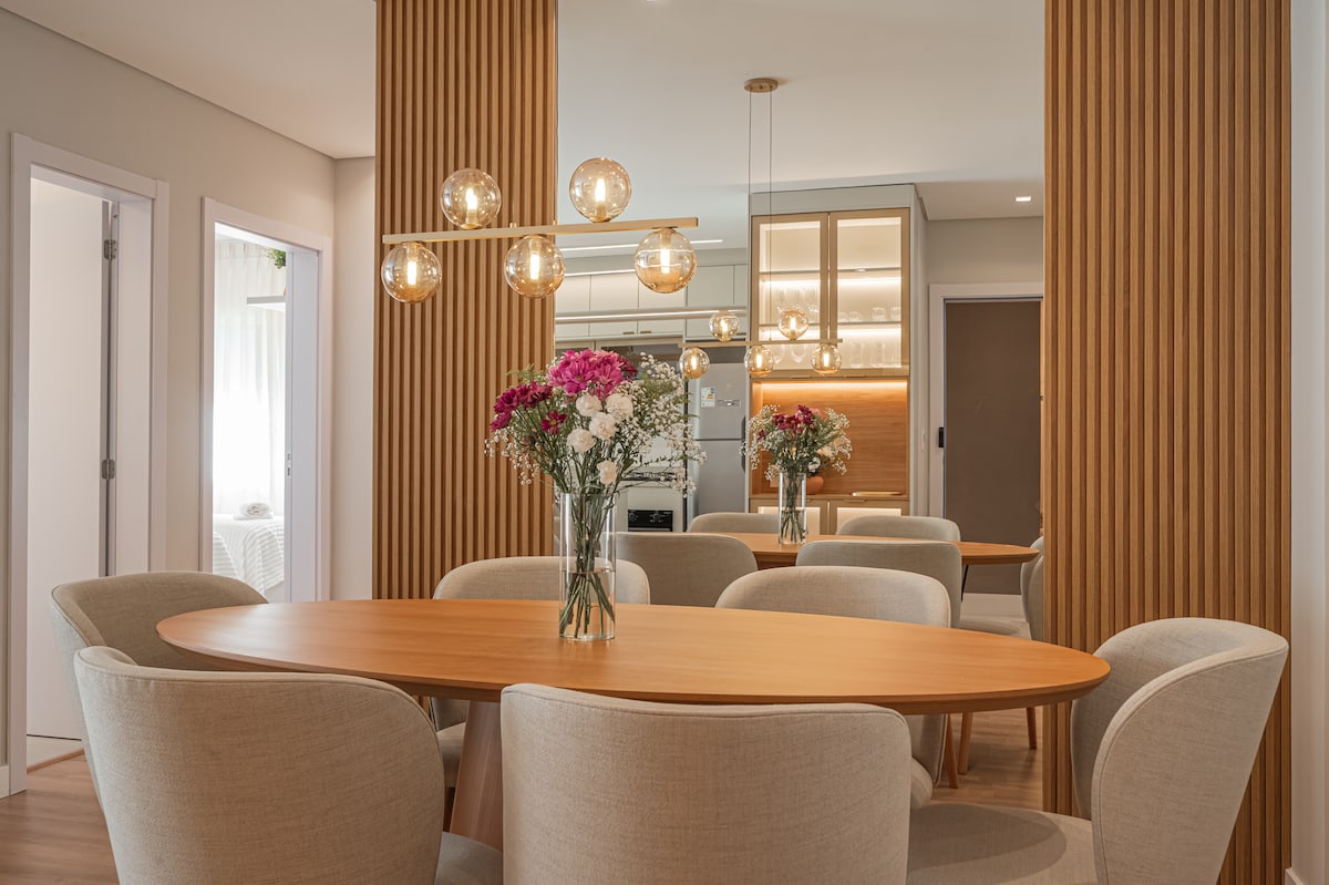 A beautiful apartment located in the Bavária neighborhood in Gramado, on a quiet and wooded street, just 3 blocks from a grocery store, pharmacy and bakery, 1500m from Rua Coberta and with several Fondue restaurants on the way. It has hot/cold air conditioning in all rooms, incredible decor and a fully equipped suite. Being in the central region, you can do many things on foot, having the convenience of leaving the car in the parking lot and contemplating everything Gramado has to offer!