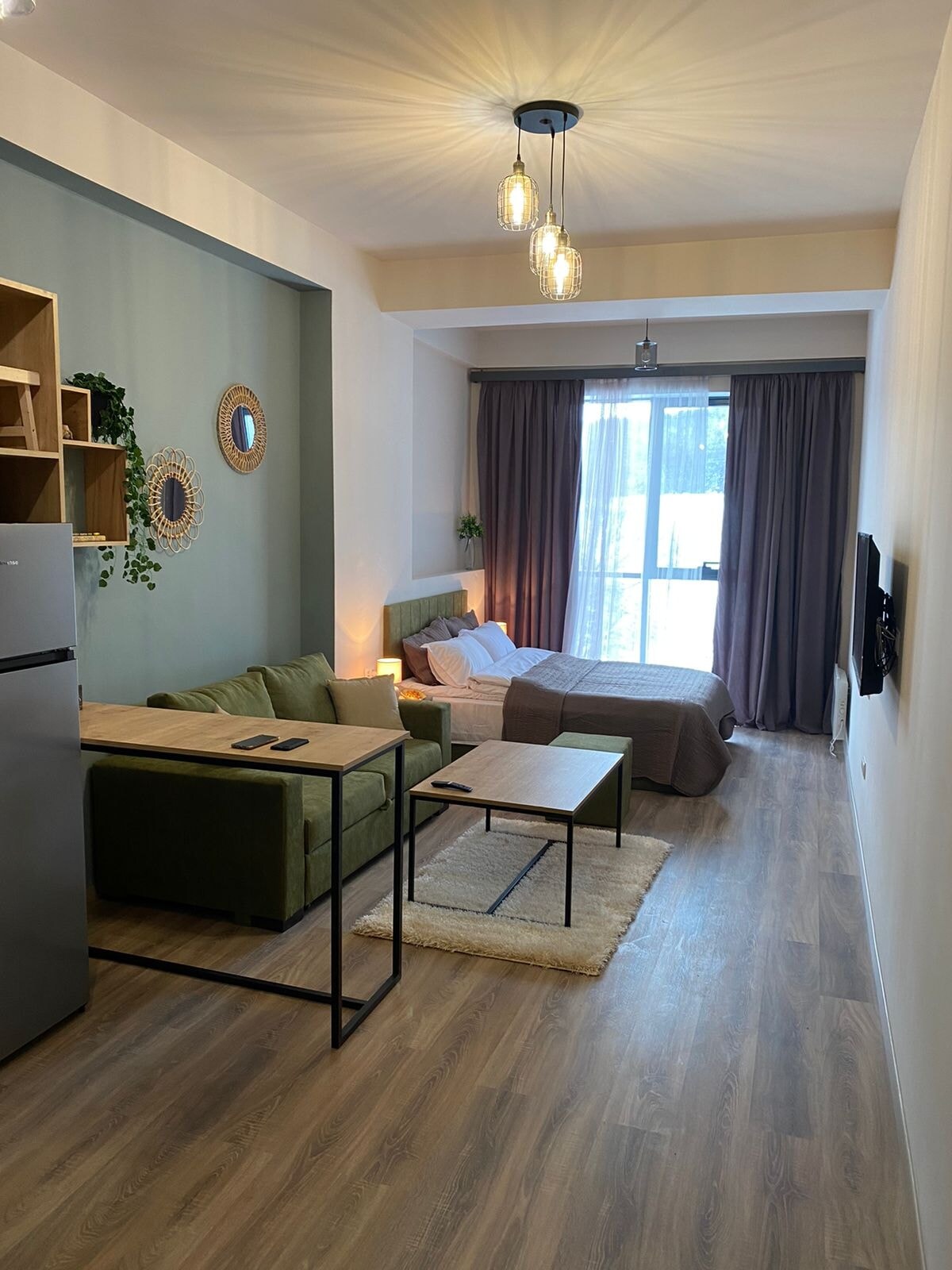 Welcome to Studio 50 | Aparthotel in Alvina Complex, Tsaghkadzor Experience the charm of Tsaghkadzor at Studio 50. Our thoughtfully designed aparthotel offers the perfect blend of modern elegance and mountain serenity. The apartment is fully furnished with tastefully curated décor, a cozy seating area, a fully equipped kitchenette, and a modern bathroom — everything you need for a comfortable short or extended stay.