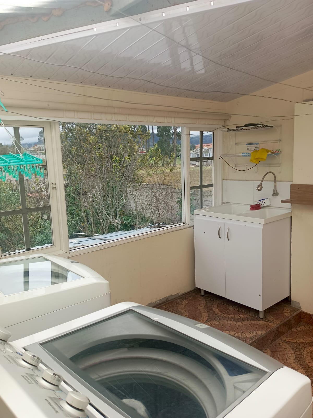 House with a separate garage. Located 3 minutes from the new southern bus terminal, 7 minutes from the Mall de los Andes by car, 5 minutes by car from the Technical University of Ambato. It has 3 bedrooms, 1 master bedroom (1/2 double bed) with a separate bathroom, 2 standard bedrooms. Cozy living room with WiFi, electric fireplace, and 60-inch plasma TV. A kitchen equipped with an oven, refrigerator, and kitchen accessories. Outdoor area for relaxation.