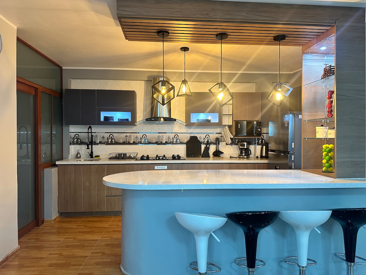 Downtown apartment, 2 minutes from downtown Huancayo. Includes a living room, dining room, electric glass-ceramic stove, electric oven, American-style kitchen furniture, microwave oven, blender, 24-hour hot water, iron, laundry, terrace with wide view of the valley, comfortable rooms (king size bed), giant closet, bathrooms with mirror, LED lights, fireplace, roller blinds, 65" TV, professional speakers. External surveillance cameras, Elevator, Netflix, Amazon, YouTube Premium.