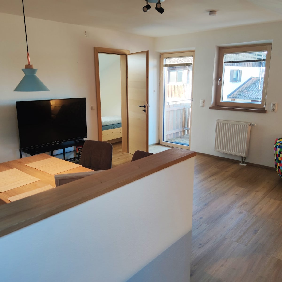 Modern apartment with luxury amenities that accommodates two people. Chic bathroom with large shower cubicle. Great large and quiet terrace just for our guests! Fully equipped kitchen! The Roche company is a 20-minute walk or 5 minutes by car. Super location in the Alps, only 40 km to Garmisch-Partenkirchen, 50 km to Munich or 100 km to Innsbruck, Lake Kochel and Lake Walchen can be reached in half an hour, Lake Starnberg and the Osterseen are very close!