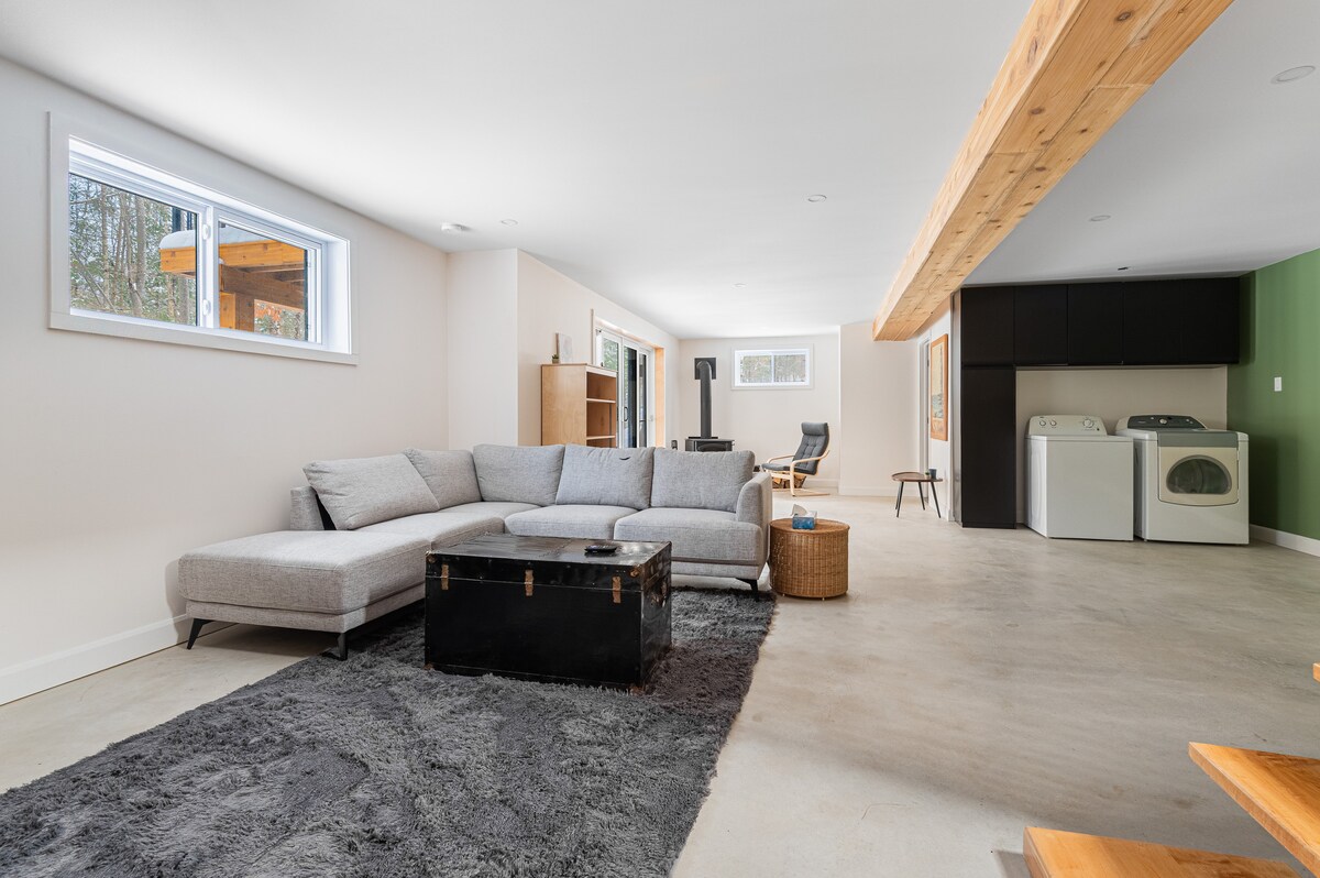 Take advantage of the soothing effect of nature by staying in this contemporary chalet with lots of windows in the heart of the forest. Tremblant is beautiful no matter the season. Dream outdoor destination, you will be 8 minutes from Mont-Blanc and 20 minutes from Mont Tremblant. Whether for hiking, cross-country skiing, snowshoeing or snowmobiling, trails are easily accessible in all directions. Without forgetting the famous P'tit Train du Nord 3 minutes away.