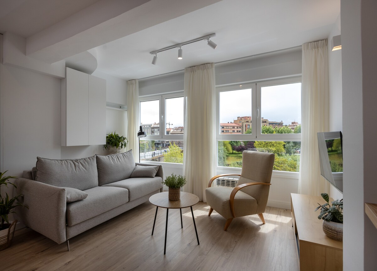Ubicado junto al Puente de Piedra, con vistas al río Ebro y Casa de las Ciencias. En pleno centro histórico a 8 minutos a pie del Espolón y de la catedral. Totalmente reformado, cuenta con amplio dormitorio, cuarto de baño, gran cocina y salón-comedor convertible en segundo dormitorio. Cocina completa, aire acondicionado, internet de alta velocidad, televisión por cable y canales internacionales. Aparcamiento gratis al aire libre a 60 metros.
